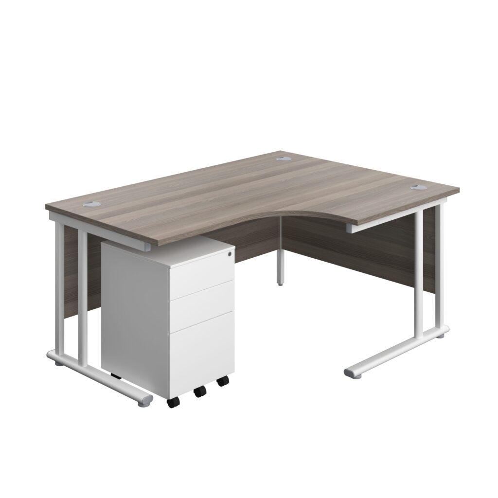 Twin Upright Right Hand Radial Desk + Under Desk Steel Pedestal 3 Drawers (FSC)