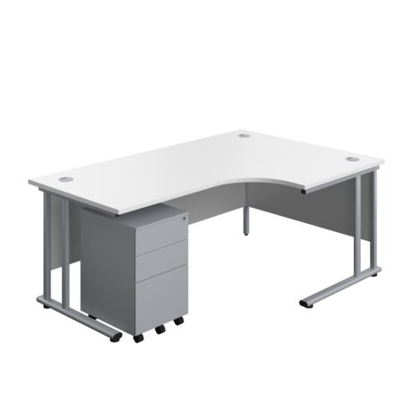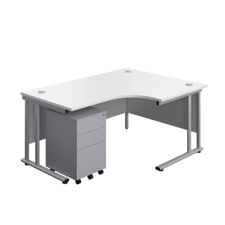 Twin Upright Right Hand Radial Desk + Under Desk Steel Pedestal 3 Drawers (FSC)