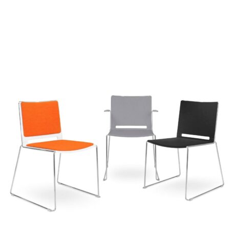 Vice Versa is an innovative product with distinctive lines, designed by Alberto Basaglia and Natalia Rota Nodari. It is assembled without screws and features a patented interlocking system that keeps costs to a minimum and facilitates disposal at the end of life. Vice Versa is a multi-purpose chair with a design that combines functionality, style and strength. The seat and backrest are injection moulded using fireproof polypropylene and are available in six colours, whilst the frame is made from steel wire and can be either chrome plated or epoxy-powder coated in a Silver, Black Graphite, White, Black, Praline, Olive Green, Atlantic Blue, Sapphire Blue, Mustard Yellow, Terracotta and Conker Brown. Vice Versa Mesh offers a range of options including a polypropylene or upholstered seat with a mesh backrest available in three colours. When combined together, the possibilities for personalisation and customisation are comprehensive. This is a chair suitable for a variety of tasks and environments.