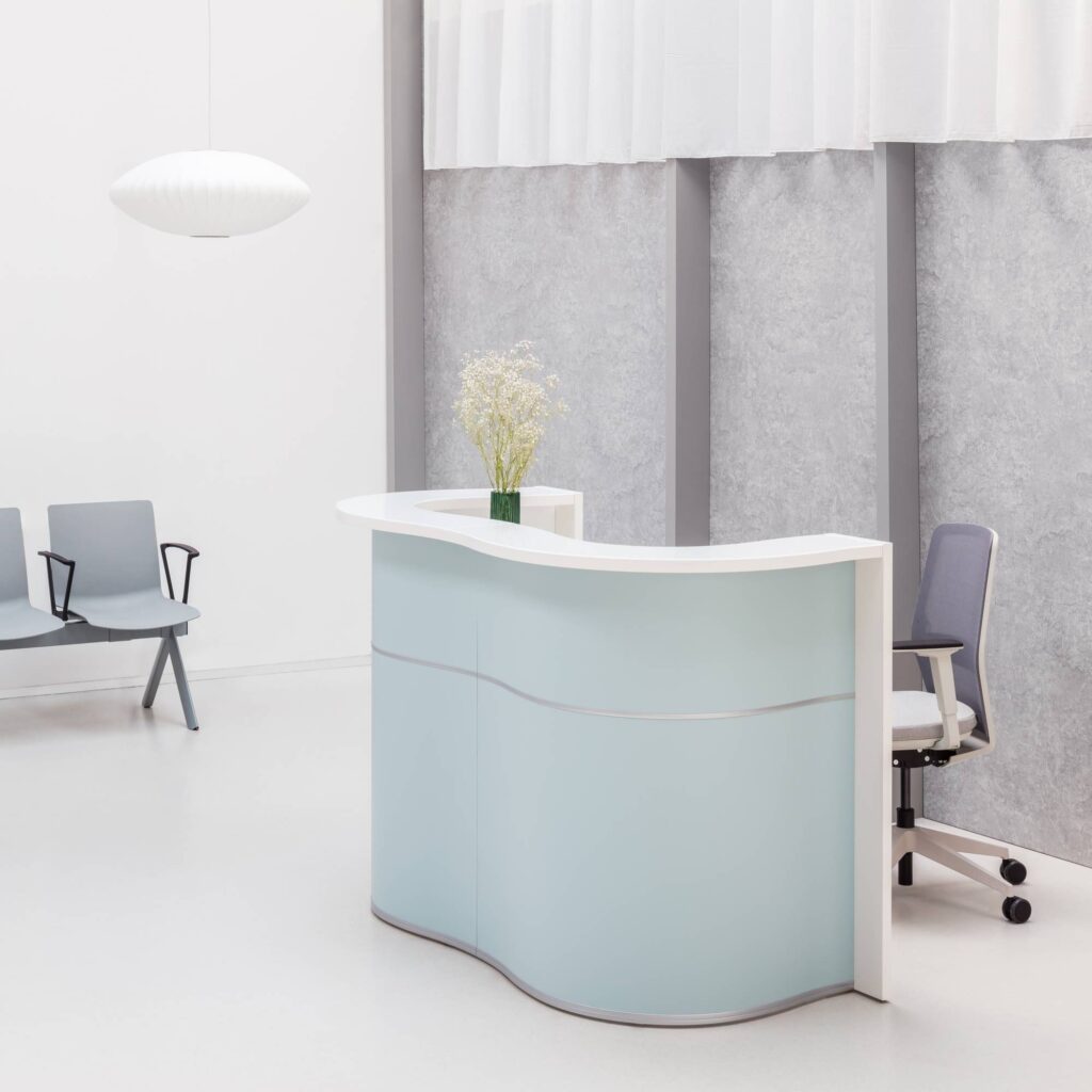 Wave Reception Desks offer a wave-inspired silhouette with modular flexibility, enabling straight or corner configurations and accessible lower modules for wheelchair users. Finished with an Organic HPL front for a professional look, they’re ideal for Reception and Reception Desks settings. Lead time: 3-4 weeks. 3D renderings available. Contact us for assistance or more information.