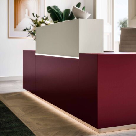 Z1 Reception Desks offer a modular, front‑of‑house solution that blends style with practicality. A generous top, concealed cable management and discreet doors keep spaces tidy while LED lighting highlights the geometric design. Finished in a lacquered palette of vibrant, neutral and pastel colours, it adapts to diverse interiors. Left‑hand version available; footprint 2800W x 800D x 1130H. Lead time 3–4 weeks; 3D renderings available.