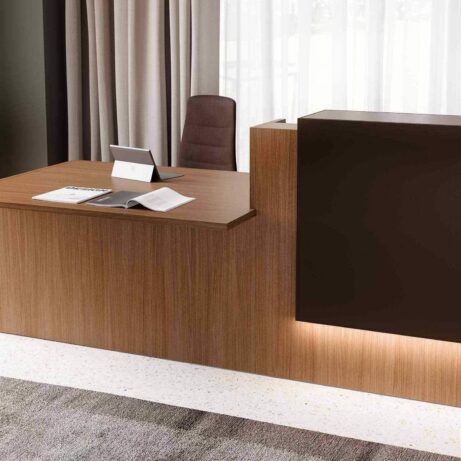 Z2 Reception Desks 5 is a modular, space-smart reception solution that combines configurable finishes with practical cable management and subtle LED accents. Tailor the look with lacquered, melamine or leather modules and a right-hand DDA counter (4660 mm wide x 1125 mm deep x 1165 mm high). 3D renderings available; lead times vary by overhang. Contact us for assistance or more information.
