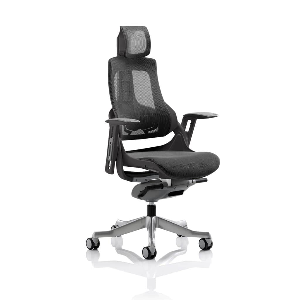 Zure High Back Shell Executive Office Chair with Arms combines a breathable mesh back, integrated headrest and ergonomic arm support for lasting comfort. Ideal for executives and teams, it complements Executive Chairs and Mesh Chairs in modern workspaces.